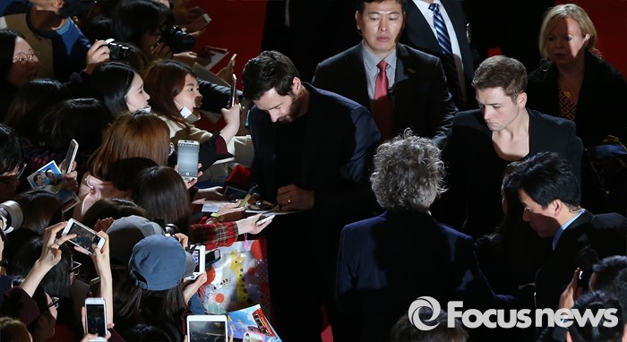 (서울=포커스뉴스) 7일 오후 서울 영등포구 IFC몰 광장에서 열린 영화 '독수리 에디' 레드카펫 행사에 참석한 배우 휴 잭맨이 팬들에게 사인을 해주고 있다.