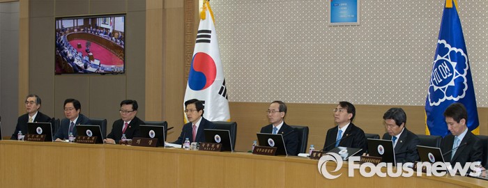 (세종=포커스뉴스) 황교안 국무총리가 8일 오전 세종시 정부세종청사 국무회의장에서 서울-세종 영상회의로 열린 국무회의에 참석해 회의를 주재하고 있다.