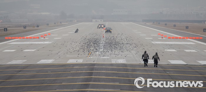 (평택=포커스뉴스) 역대 최대 규모의 한·미연합훈련(키리졸브연습·독수리훈련·쌍용훈련)이 실시되고 있는 8일 오전 경기도 평택시 주한미군 오산공군기지에서 장병들이 훈련에 열중하고 있다.
