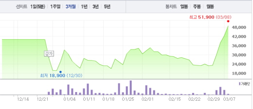 8일 오전 9시12분 코데즈컴바인은 전날보다 13.88%(5900원) 오른 4만8300원에 거래되고 있다.