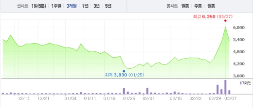 대우조선해양은 부진한 실적 발표에 따라 연속 5일째 상승세를 이어가지 못하고 급락했다. 대우조선해양은 오전 9시 42분 현재 전날보다 11.42%(690원) 하락한 5350원에 거래 중이다.