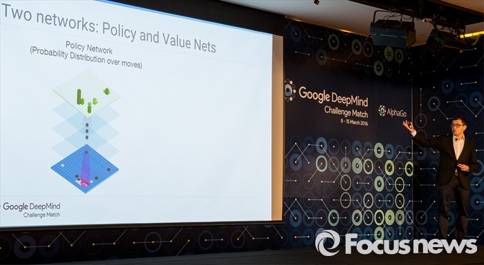 (서울=포커스뉴스) 8일 오전 서울 종로구 새문안로 포시즌스호텔에서 열린 '구글 딥마인드 챌린지 매치' 내ㆍ외신 합동 기자회견에 참석한 데미스 하사비스 구글 딥마인드 최고경영자가 알파고의 알고리즘에 대해 설명하고 있다.