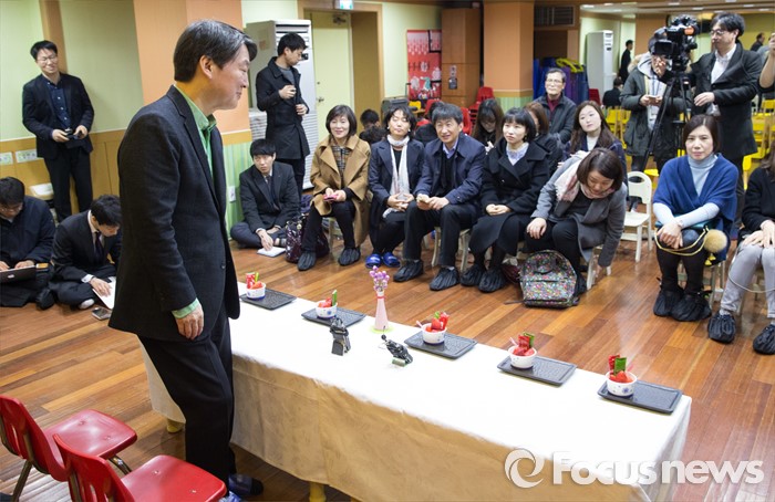 (서울=포커스뉴스) 노원병 출마 선언 기자회견을 마친 안철수 국민의당 상임공동대표가 8일 오전 서울 노원구 동일로의 한 유치원에서 열린 학부모 간담회에 참석하고 있다.