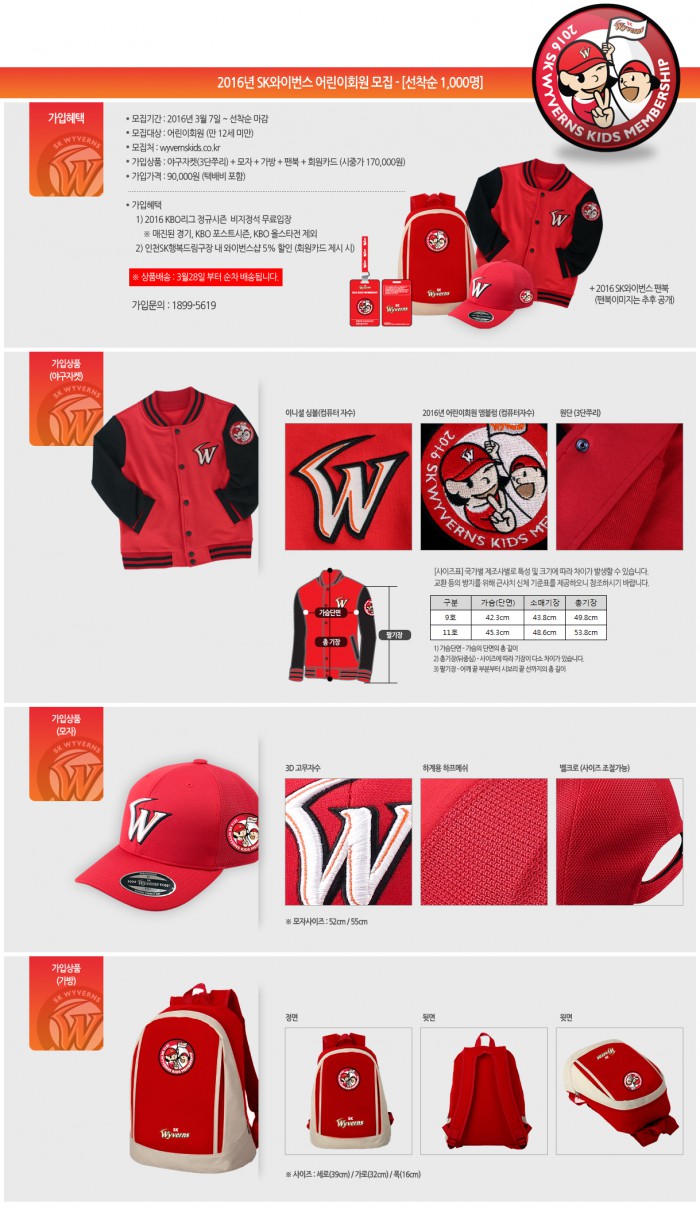 | △ sk와이번스 2016년 어린이 회원 모집 |