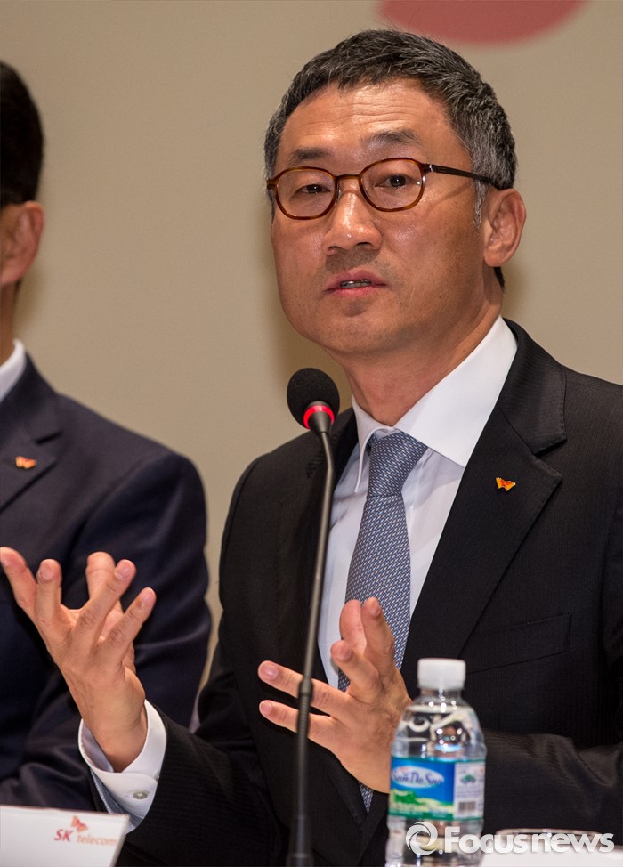 또 “SK브로드밴드는 인수합병을 전제로 이를 추진하겠다는 것인데, 방송통신에 이어 콘텐츠 유통시장 독점화를 통해 자사 미디어 플랫폼의 이익을 극대화하기 위한 목적이라고 밖에 해석할 수 없다”고 날선 입장을 내보였다.(서울=포커스뉴스) 2일 오후 서울 중구 SK T타워에서 열린 'SK텔레콤-CJ헬로비전' 인수합병 설명회에 참석한 이인찬 SK브로드밴드 대표가 취재진의 질문에 답하고 있다. 2015.12.02 양지웅 기자