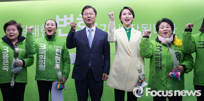 | △ 화이팅 외치는 천정배 의원과 여성 후보들 |