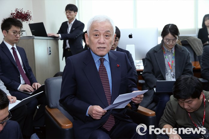 (서울=포커스뉴스) 김한길 국민의당 상임선대위원장이 8일 오후 서울 여의도 국회 의원회관 집무실에서 기자간담회를 통해 현안에 대한 입장을 밝히고 있다.