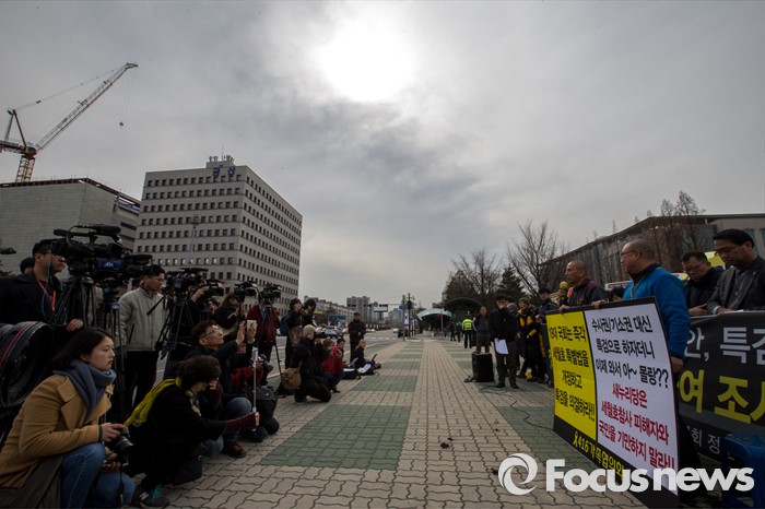 (서울=포커스뉴스) 8일 오후 서울 영등포구 국회 앞에서 열린 '19대 국회 세월호 특별법 개정안 특검 처리 촉구 기자회견'에 참석한 4.16가족협의회 및 관련 시민단체 관계자들이 정부에 세월호 참사 특검처리 약속 이행을 촉구 하고 있다.