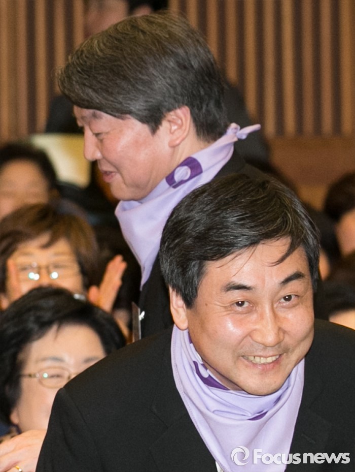 (서울=포커스뉴스) 8일 오후 서울 여의도 국회 헌정기념관에서 열린 세계 여성의 날 기념대회에 참석한 안철수 국민의당 상임공동대표가 축사를 위해 이종걸 더불어민주당 원내대표의 뒤를 지나 단상으로 향하고 있다.