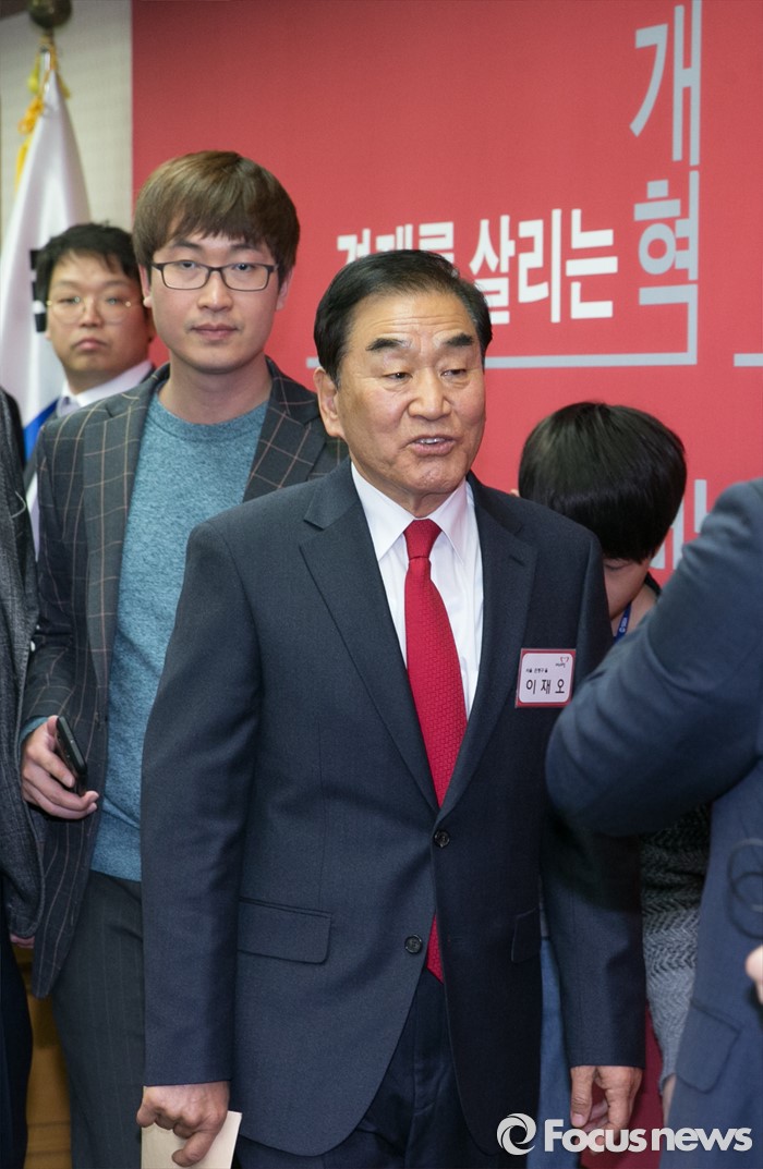 (서울=포커스뉴스) 8일 오후 서울 여의도 새누리당사에서 열린 20대 총선 분구·통합·경계조정 지역구 공천신청자 면접에 서울 은평을에 신청한 이재오 의원이 참석하고 있다.
