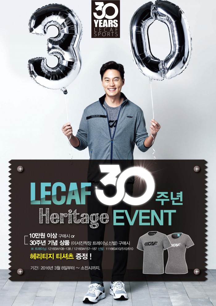 전국 르까프 매장에서 10만원 이상 상품을 구입하거나 30주년 기념 상품인 트레이닝 세트와 헤리온3.0을 산 이들이 대상이다. 사은품은 선착순으로 제공되며, 이벤트는 소진시까지 진행된다.