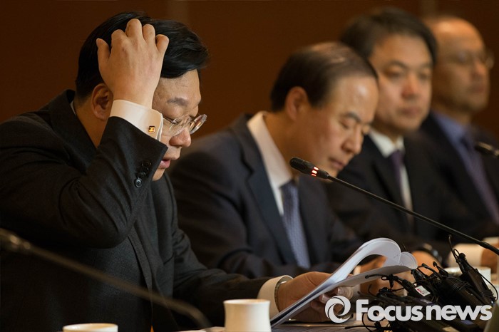(서울=포커스뉴스) 주형환(왼쪽) 산업통상자원부 장관이 9일 오전 서울 중구 롯데호텔에서 열린 '주요 투자기업 간담회'에서 모두발언을 하고 있다. 이날 주 장관은 30대 그룹 123조 투자계획이 차질없이 이행되도록 밀착 지원하겠다고 밝혔다.