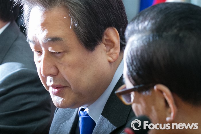 (서울=포커스뉴스) 김무성(왼쪽) 새누리당 대표와 서청원 최고위원이 9일 오전 서울 여의도 국회에서 열린 최고중진연석회의에 참석해 대화하고 있다.