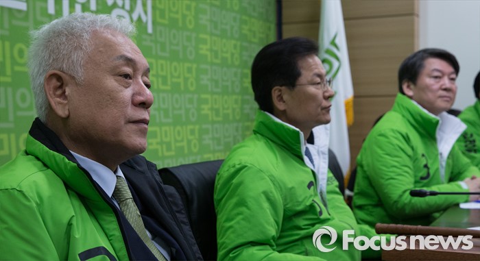 (서울=포커스뉴스) 9일 오전 서울 마포구 국민의당 당사에서 열린 최고위원회의에서 지도부 의원들이 진지한 표정을 짓고 있다. 왼쪽부터 김한길 상임공동선대위원장, 천정배 상임공동대표, 안철수 상임공동대표