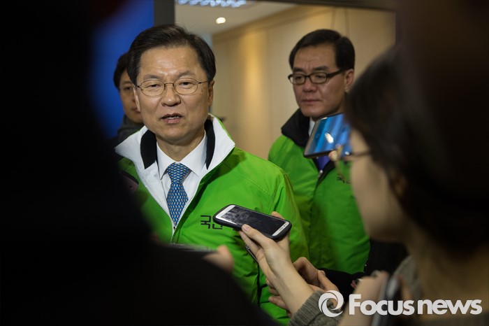 (서울=포커스뉴스) 9일 오전 서울 마포구 국민의당 당사에서 선거대책회의를 마친 천정배 상임공동대표가 기자들에게 야권통합, 야권연대에 관한 질문을 받고 있다.
