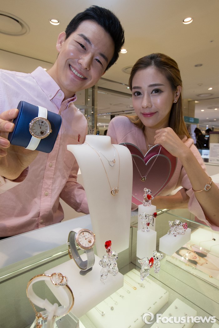 (서울=포커스뉴스) 9일 오전 중구 롯데백화점 본점에서 스와로브스키(SWAROVSKI)의 '화이트데이 컬렉션'을 모델들이 선보이고 있다. 제품은 디어(Dear) 네크리스와 뱅글, 블로우(Blow) 이어링, 데이타임(Daytime) 워치로 구성되어 있다.