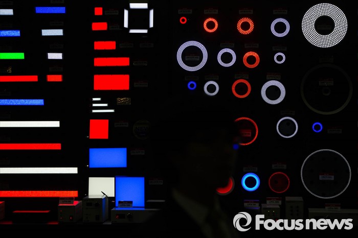 (서울=포커스 뉴스) 9일 오후 서울 강남구 코엑스에서 열린 '2016 오토메이션 월드 국제스마트공장, 자동화 전시회'에서 자동화 설비에 필요한 각종 경광등이 빛나고 있다.