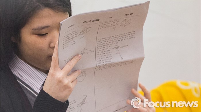 (서울=포커스뉴스) 10일 오전 서울 서대문구 명지고등학교에서 1학년 학생이 2016학년도 첫 전국연합학력평가를 앞두고 마지막 공부를 하고 있다.