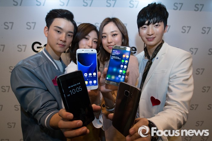 (서울=포커스뉴스) 10일 오전 서울 중구 신라호텔에서 삼성전자의 스마트폰 '갤럭시 S7 엣지와 갤럭시 S7'을 모델들이 선보이고 있다. 이번 제품은 듀얼 픽셀과 F1.7 조리개 탑재, 방수·방진과 대용량 배터리가 탑재되어 있다.
