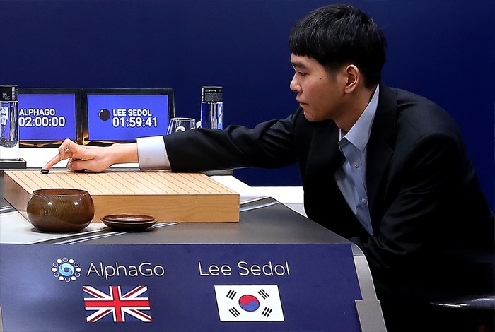 첫 대국에선 이 9단이 초반 변칙에 가까운 수를 뒀다면 이와 정반대의 상황이 펼쳐진 것이다. 실제 이 9단은 알파고의 어설픈 초반 수에 전혀 대응을 하지 않고 있다. 다만 알파고가 우하귀에서 정석을 늘어놓다 갑자기 손을 빼고 상변에 '중국식 포석'을 펼치자 이 9단은 장고 끝에 좌변을 갈라쳐 역시 보기드문 그림을 그렸다.