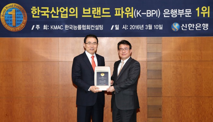 신한은행은 한국능률협회컨설팅(KMAC)에서 주관하는 한국산업의 브랜드파워(K-BPI)조사에서 처음으로 은행 부문 1위로 선정됐다고 10일 밝혔다.
