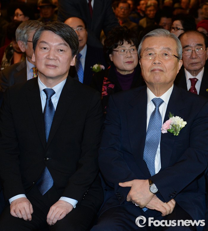 (서울=포커스뉴스) 김종인(오른쪽) 더불어민주당 비대위 대표와 안철수 국민의당 상임공동대표가 10일 오후 서울 종로구 세종문화회관 세종홀에서 열린 김종필 전 국무총리의 정치인생을 담은 '김종필 증언록' 출판기념회에 참석해 자리하고 있다.