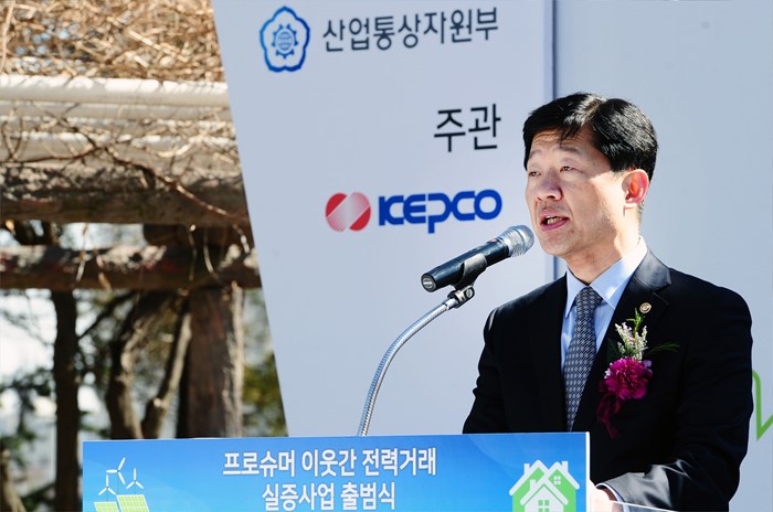 | △ 프로슈머 이웃간 거래 실증사업 출범식 축사하는 우태희 차관 |