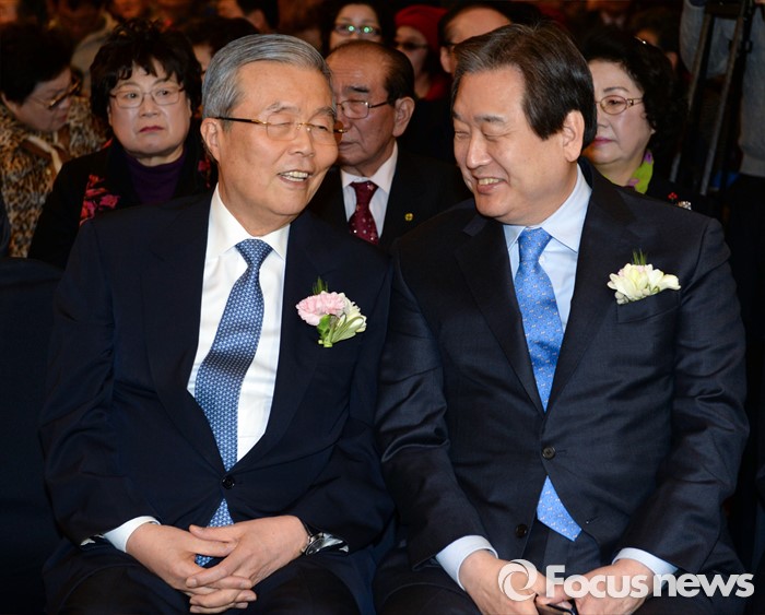(서울=포커스뉴스) 김무성(오른쪽) 새누리당 대표와 김종인 더불어민주당 비대위 대표가 10일 오후 서울 종로구 세종문화회관 세종홀에서 열린 김종필 전 국무총리의 정치인생을 담은 '김종필 증언록' 출판기념회에 참석해 대화하고 있다.
