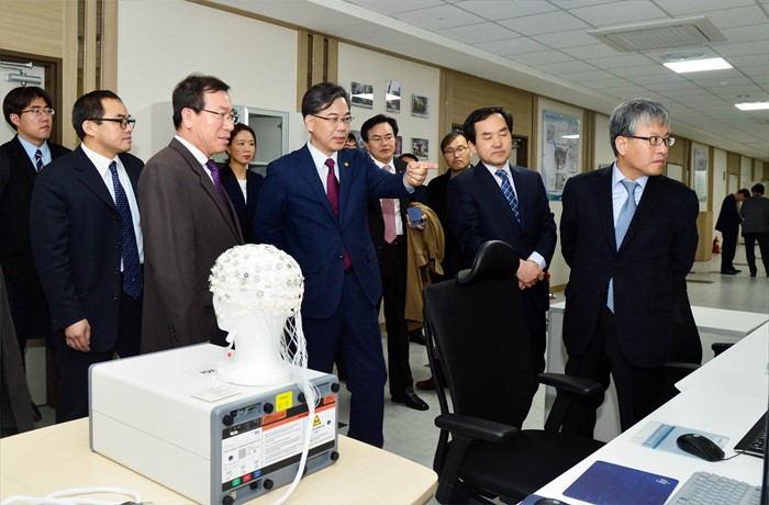 (대구=포커스뉴스) 송언석 기획재정부 차관이 R&D 재정 지원 사업 점검 차 10일 대구 소재 첨단의료복합단지를 현장방문해 핵심 시설 가동상황 점검 및 시찰을 하고 있다. <사진제공=기획재정부>