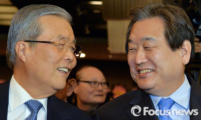 (서울=포커스뉴스) 김무성(오른쪽) 새누리당 대표와 김종인 더불어민주당 비대위 대표가 10일 오후 서울 종로구 세종문화회관 세종홀에서 열린 김종필 전 국무총리의 정치인생을 담은 '김종필 증언록' 출판기념회에 참석해 대화하고 있다.