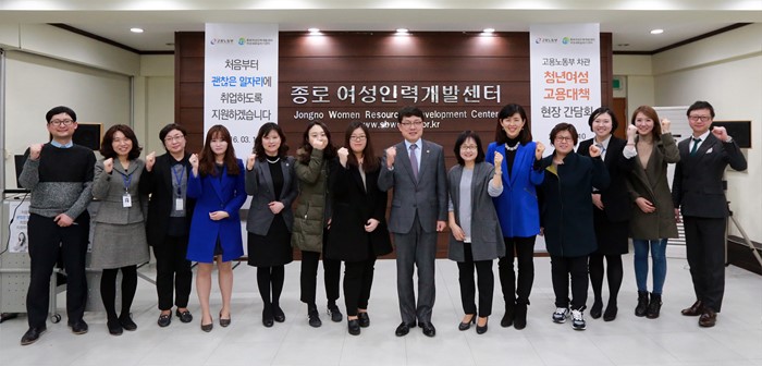 (서울=포커스뉴스) 고영선 고용노동부 차관이 청년여성의 일자리 문제에 관한 청년여성과 기업체 인사담당자들의 의견을 수렴하기 위해 10일 오후 서울 종로구 종로여성인력개발센터에서 청년여성 고용대책 현장간담회를 갖고 참석자와 기념촬영 하고 있다. <사진제공=고용노동부>