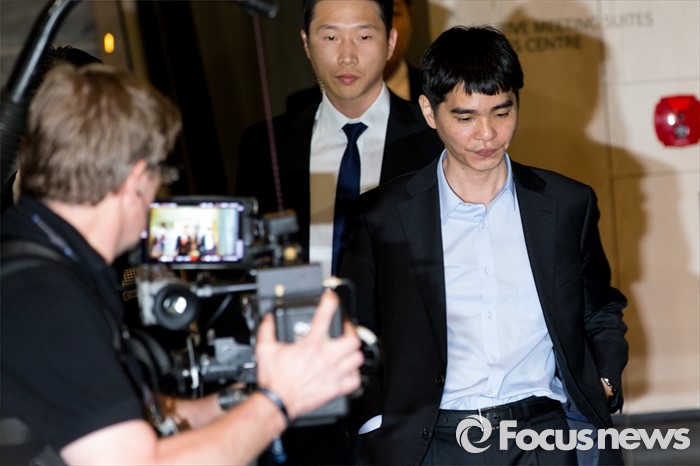 (서울=포커스뉴스) 프로바둑기사 이세돌 9단이 10일 오후 서울 종로구 포시즌스 호텔에서 열린 '구글딥마인드 챌린지 매치' 인공지능 '알파고'와의 제2국에 불계패를 당한 뒤 기자회견장으로 이동하고 있다.
