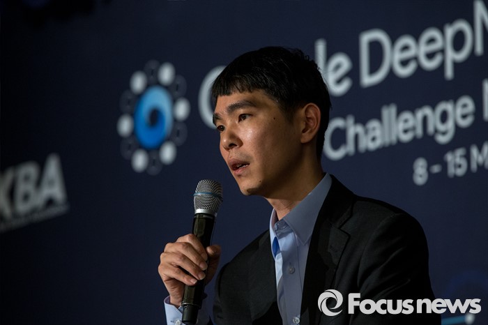 (서울=포커스뉴스) 프로바둑기사 이세돌 9단이 10일 오후 서울 종로구 포시즌스 호텔에서 열린 '구글딥마인드 챌린지 매치' 인공지능 '알파고'와의 제2국에 불계패를 당한 뒤 기자회견 하고 있다.