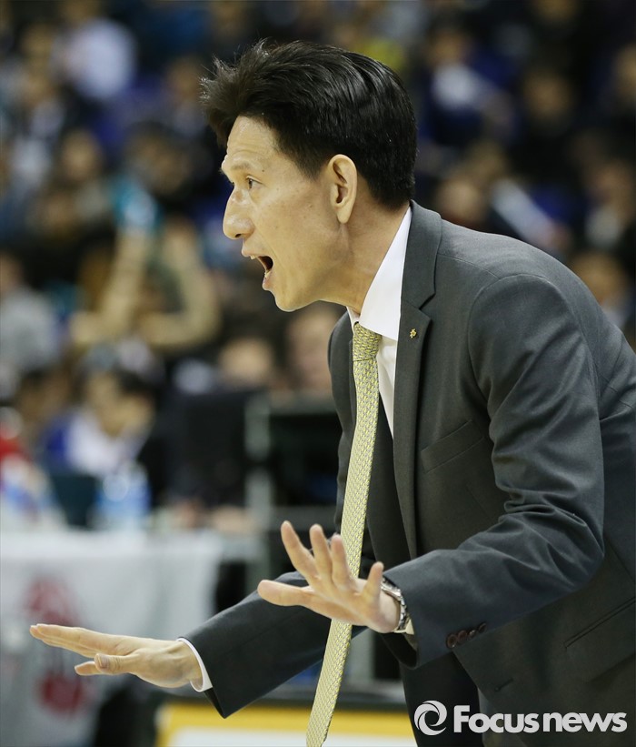 (부천=포커스뉴스) 10일 부천체육관에서 열린 2015-2016 여자프로농구 PO 1차전 KEB하나-KB스타즈 경기에서 KB스타즈 서동철 감독이 선수들의 안정된 플레이를 독려하고 있다.