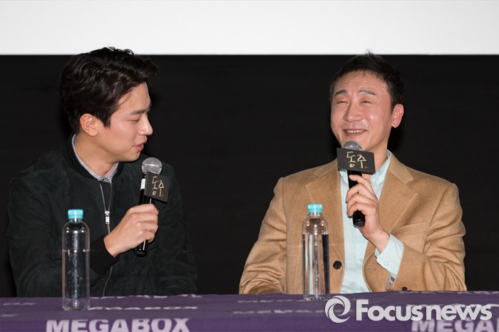 (서울=포커스뉴스) 10일 오후 서울 강남구 코엑스 메가박스에서 열린 영화 '동주'의 관객과의 대화에 참석한 배우 박정민(왼쪽)과 김인우가 대화하고 있다.
