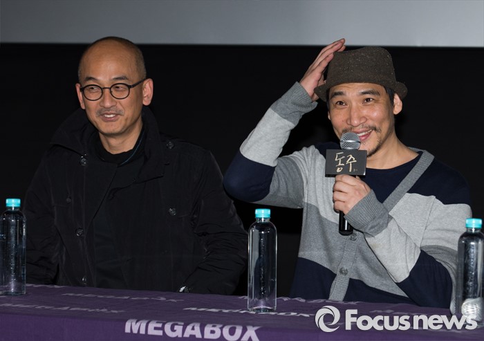 (서울=포커스뉴스) 10일 오후 서울 강남구 코엑스 메가박스에서 열린 영화 '동주'의 관객과의 대화에 참석한 모그(오른쪽) 음악감독이 관객 질문에 답변하고 있다. 왼쪽은 이준익 감독.