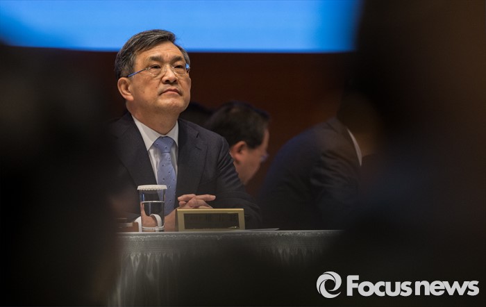 (서울=포커스뉴스) 11일 오전 서울 서초구 삼성전자 본사 다목적홀에서 열린 47기 정기주주총회에 참석한 권오현 이사회 의장(대표이사 부회장)이 개회를 기다리고 있다.