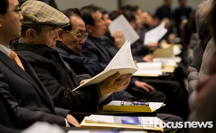 (서울=포커스뉴스) 11일 오전 서울 서초구 삼성전자 본사 다목적홀에서 열린 47기 정기주주총회에 참석한 주주들이 안내책자를 살펴보고 있다.