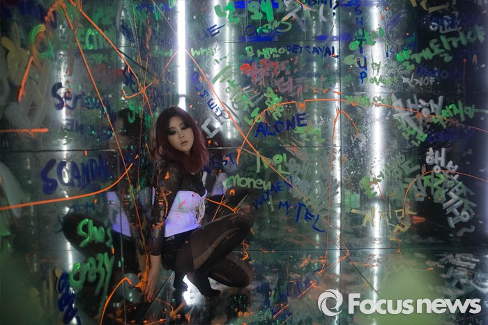 (서울=포커스뉴스) 11일 오후 서울 영등포구 안국약품 갤러리 AG에서 가수 솔비가 '블랙스완-거짓된 자아들' 쇼케이스에 참석해 관련 공연을 선보이고 있다.