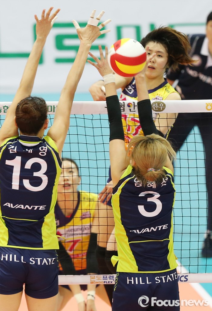 이재영 외에도 시즌 중 합류한 외국인선수 알렉시스가 서서히 컨디션을 끌어올린 만큼 알렉시스의 도움 여부도 관건이 될 전망이다. 물론 현대건설로서도 라이트 황연주가 함께 힘을 낼 경우 좀 더 원활한 경기력을 선보일 수 있음은 당연하다.(수원=포커스뉴스) 2015년 11월5일 수원실내체육관에서 열린 프로배구 '2015~2016 NH농협 V-리그’여자부 2라운드 현대건설-흥국생명 경기에서 흥국생명 이재영이 현대건설 김세영, 염혜선의 더블 블로킹 위로 스파이크를 하고 있다. 2015.11.05 우정식 기자