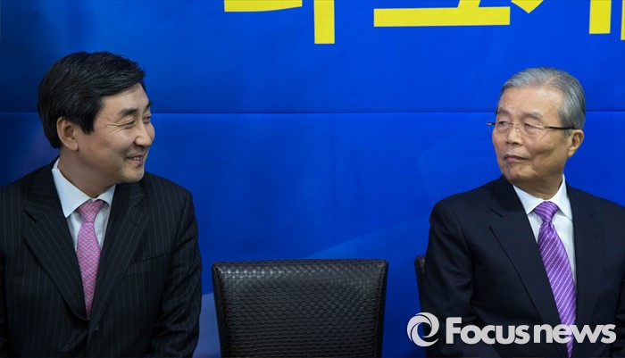 (공주=포커스뉴스) 김종인(오른쪽) 더불어민주당 대표가 11일 오후 충남 공주시에서 열린 더불어민주당 박수현 의원의 선거사무소 개소식에 참석, 행사에 앞서 이종걸 더민주 원내대표와 이야기를 나누고 있다.