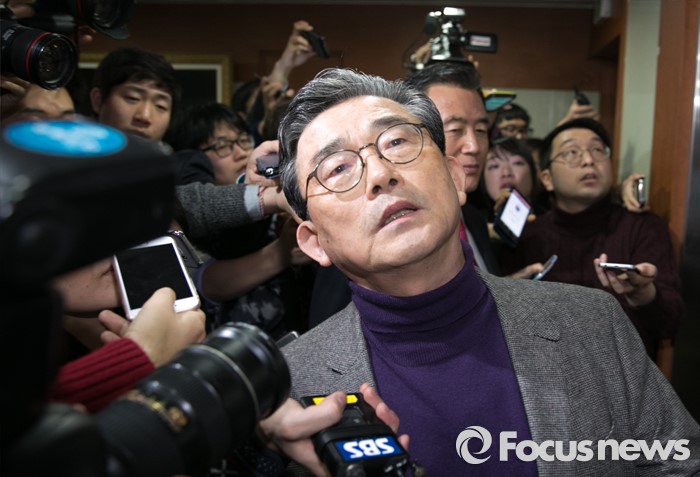 (서울=포커스뉴스) 이한구 새누리당 공천관리위원장과 위원들이 11일 오후 서울 여의도 당사에서 공관위 내부 갈등 등에 대해 사과하는 내용의 기자회견을 마친 뒤 취재진 질문을 받으며 나서고 있다.