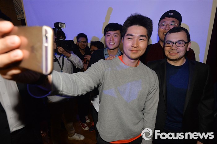 (대전=포커스뉴스) 이세돌 9단과 겨루는 인공지능 컴퓨터 알파고를 개발한 구글 딥마인드 최고경영자 데미스 하사비스가 11일 오후 대전 유성구 한국과학기술원(KAIST)에서 '인공지능과 미래' 라는 주제로 강연 후 학생들과 기념촬영을 하고 있다.