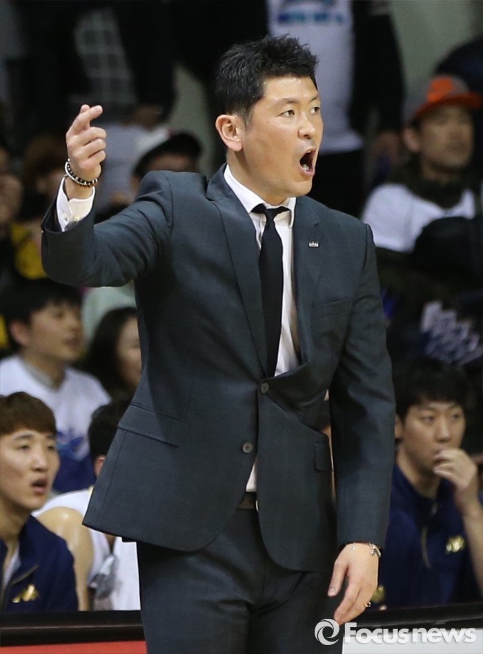 (안양=포커스뉴스) 11일 안양실내체육관에서 열린 2015-2016 프로농구 KGC-KCC 4강플레이오프 3차전에서 KCC 추승균 감독이 경기중 고함을 지르며 선수들을 다그치고 있다.