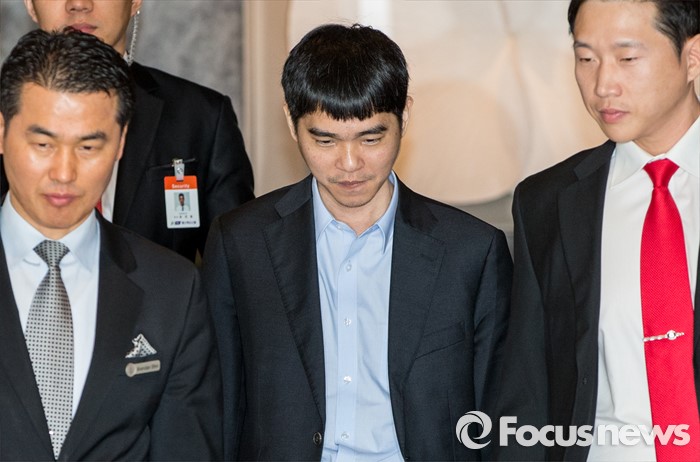 (서울=포커스뉴스) 이세돌 9단이 12일 오후 서울 종로구 포시즌스 호텔에서 열린 '구글딥마인드 챌린지 매치' 인공지능 '알파고'와의 제3국을 위해 대국장으로 발걸음을 옮기고 있다.