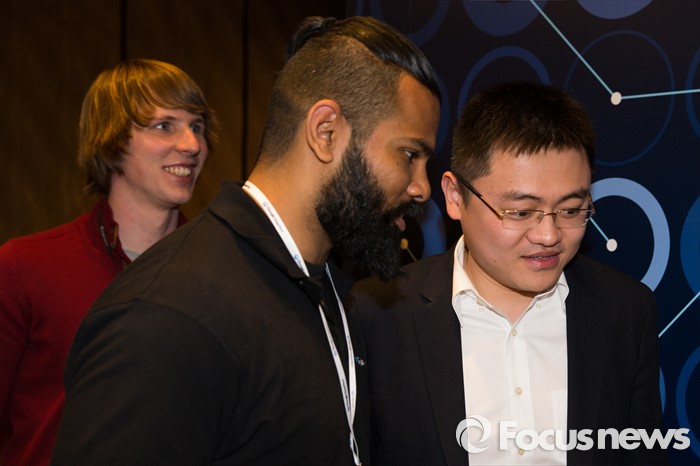 (서울=포커스뉴스) 13일 오후 서울 종로구 포시즌스호텔에서 열린 구글 딥마인드 챌린지 매치 제4국 기자회견에 참석한 구글 딥마인드의 알파고 팀원들과 판 후이 2단이 대화하고 있다.
