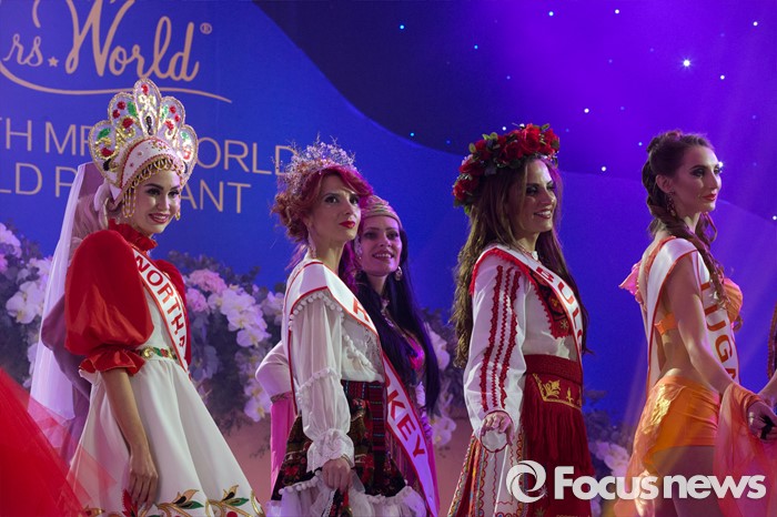 | △ Mrs. World 2016, 화려한 옷 입은 참가자들 |