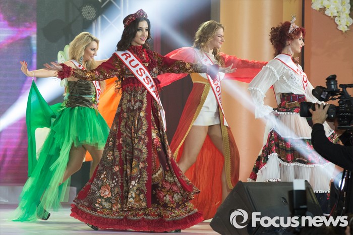 (동관/중국=포커스뉴스) 중국 광동성 동관에서 12일 오후 열린 제27회 미시즈월드 미인대회에서 각 나라의 대표 참가자들이 전통의상을 입고 춤을 추고 있다. 우승은 남아프리카 공화국의 캔디스 드보라 아브람스, 2위는 폴란드의 클라우디아 마트라크 두덱, 3위는 한국의 최은혜가 차지했다.
