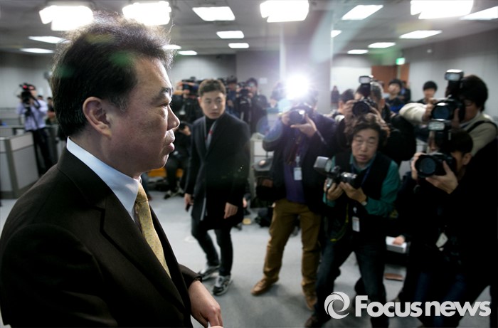(서울=포커스뉴스) 김성수 더불어민주당 대변인이 14일 오전 서울 여의도 국회 정론관에서 추가 공천심사 결과 발표를 마친 뒤 퇴장하고 있다. 이날 더불어민주당은 이미경, 이해찬, 정호준 의원의 공천 배제(컷오프)를 발표했다.