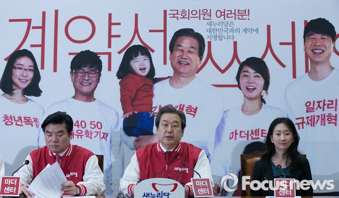 (서울=포커스뉴스) 김무성(가운데) 새누리당 대표가 14일 오전 서울 여의도 국회에서 열린 최고위원회의에 참석해 모두발언하고 있다.